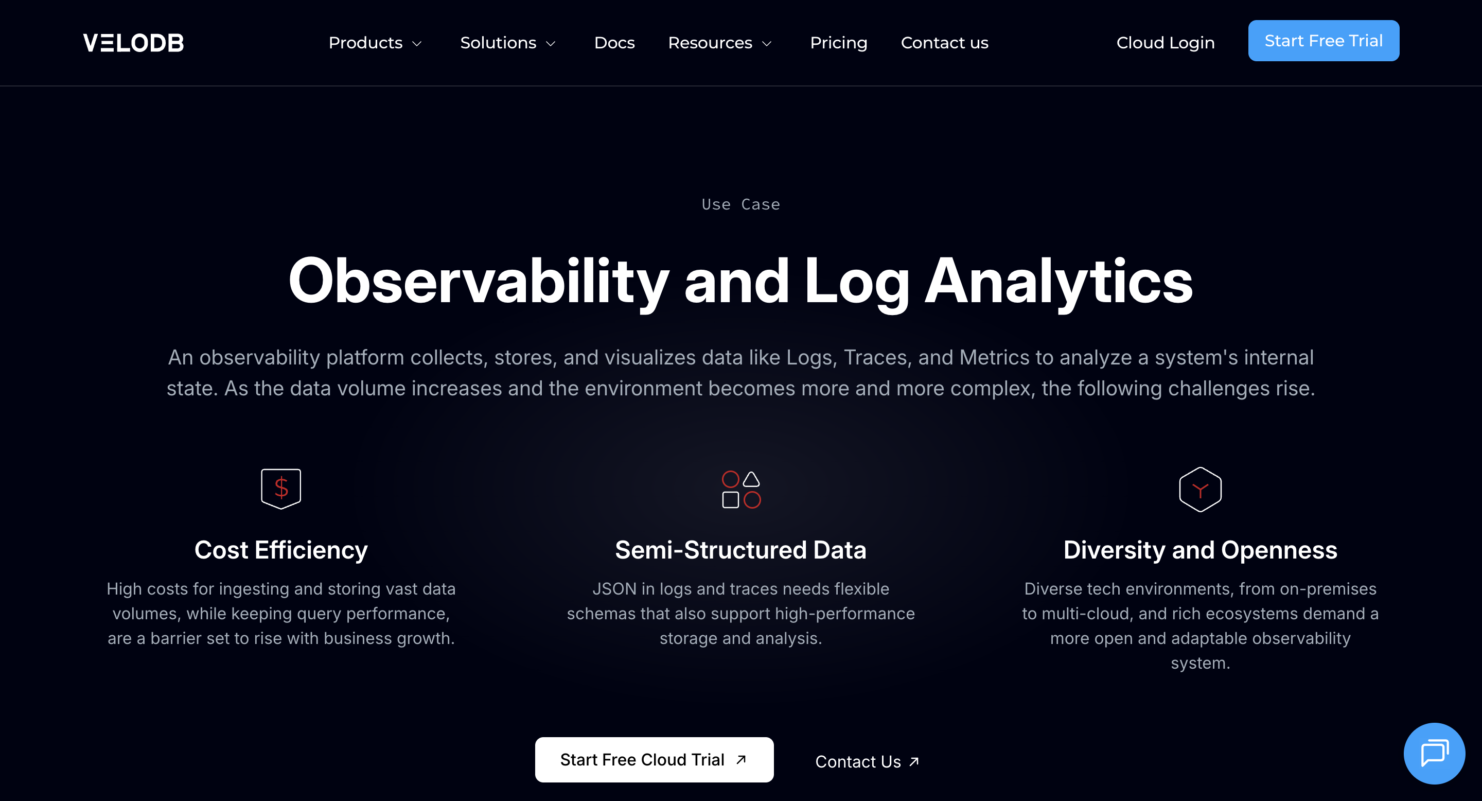 | VeloDB | Built on Apache Doris with OTel integration | High-performance SQL + inverted index | Strong SQL-based cross-signal analysis | Self-managed + cloud | Efficient for large-scale retention | Large-scale observability with cost sensitivity |
