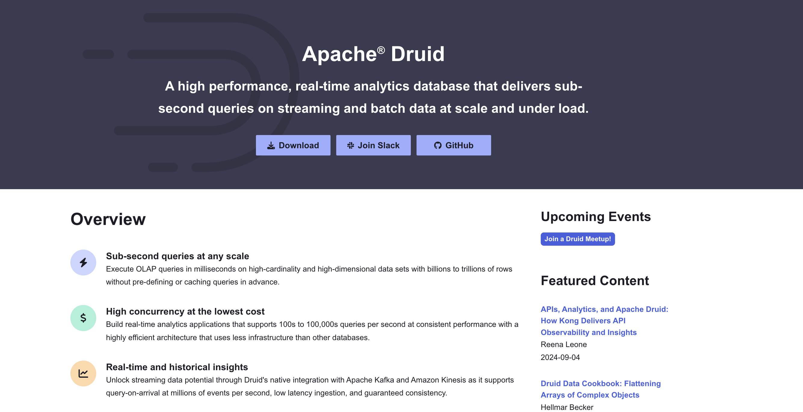 However, Druid is optimized around event-style, append-heavy data models. Real-time updates, complex joins, and non-time-based analytical patterns are less natural fits.