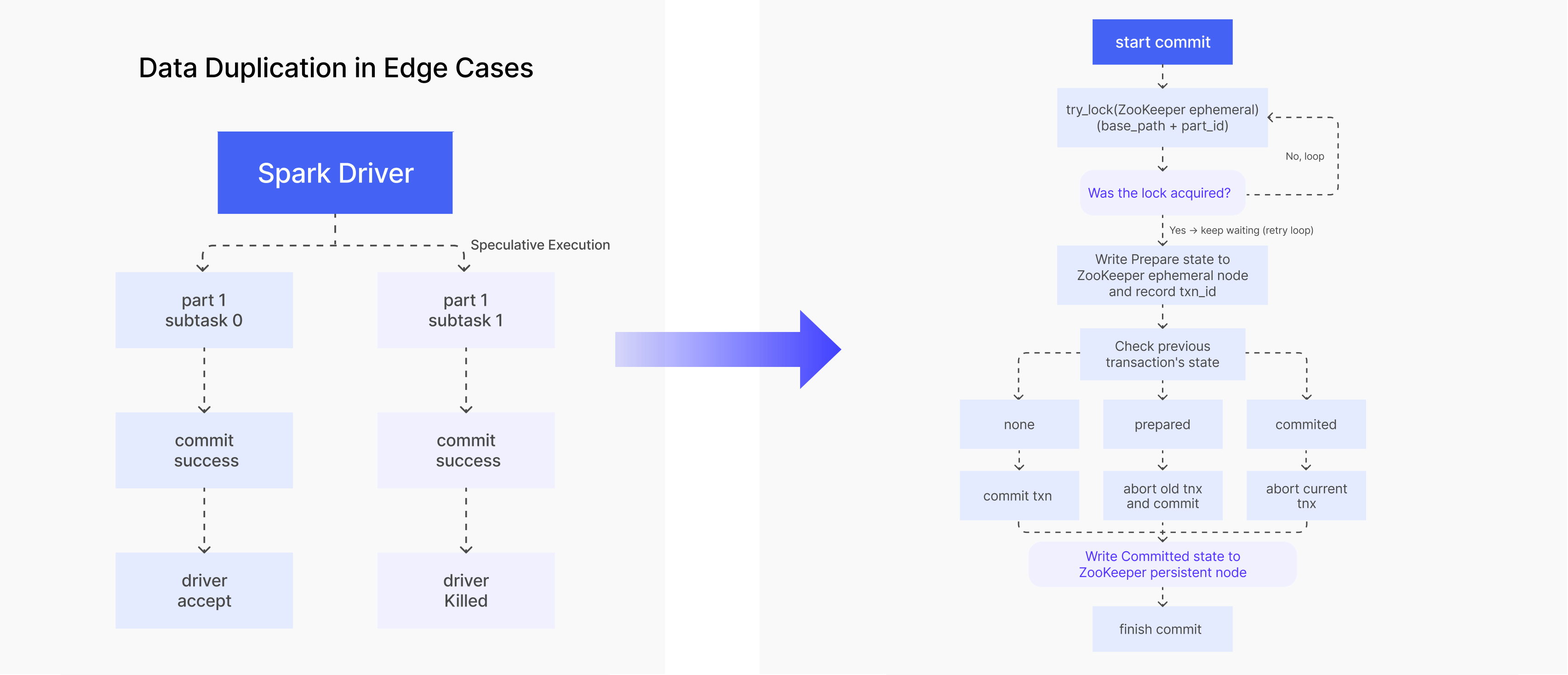 Speculative execution: Spark could launch duplicate tasks to hedge against slow executors. If two tasks both raced to completion and both finished Apache Doris' two-phase commit, the data was written twice, even though the Driver only counted one task as successful.