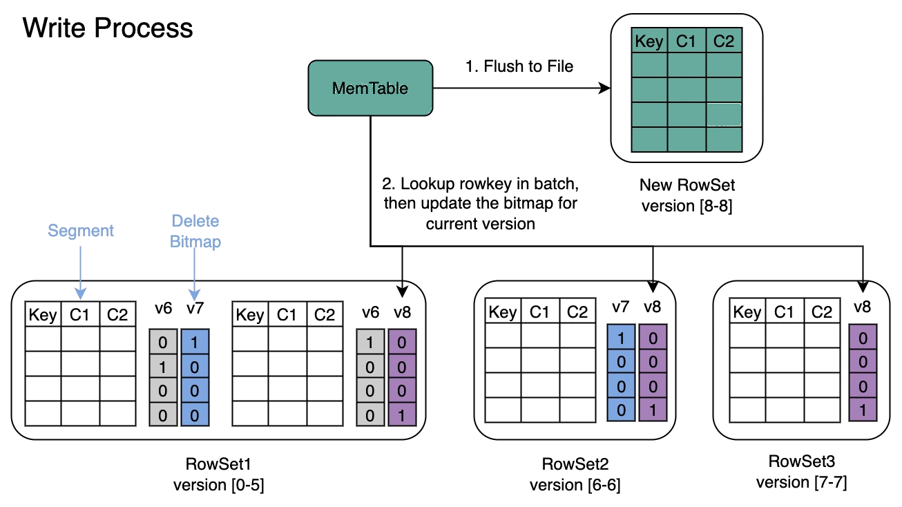 Second, the storage architecture. The MOW engine sorts, encodes, and merges data at write time, producing clean, well-organized storage structures. At query time, there are no scattered delta logs to scan and no on-the-fly merge calculations. This "merge at write, lightweight at read" design approach keeps query latency stable and predictable, which is critical for latency-sensitive use cases like real-time dashboards and SLA-bound reporting.