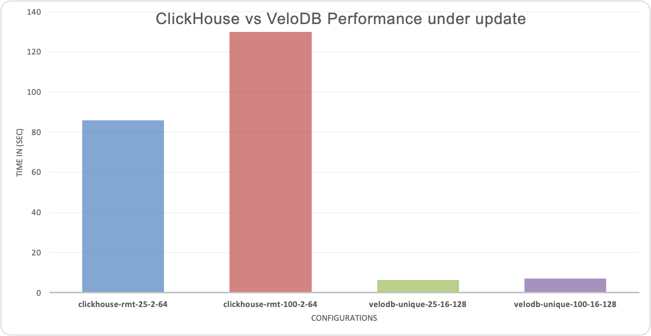 Further details with this benchmark can be found here: https://www.velodb.io/blog/apache-doris-34x-faster-clickhouse-realtime-updates