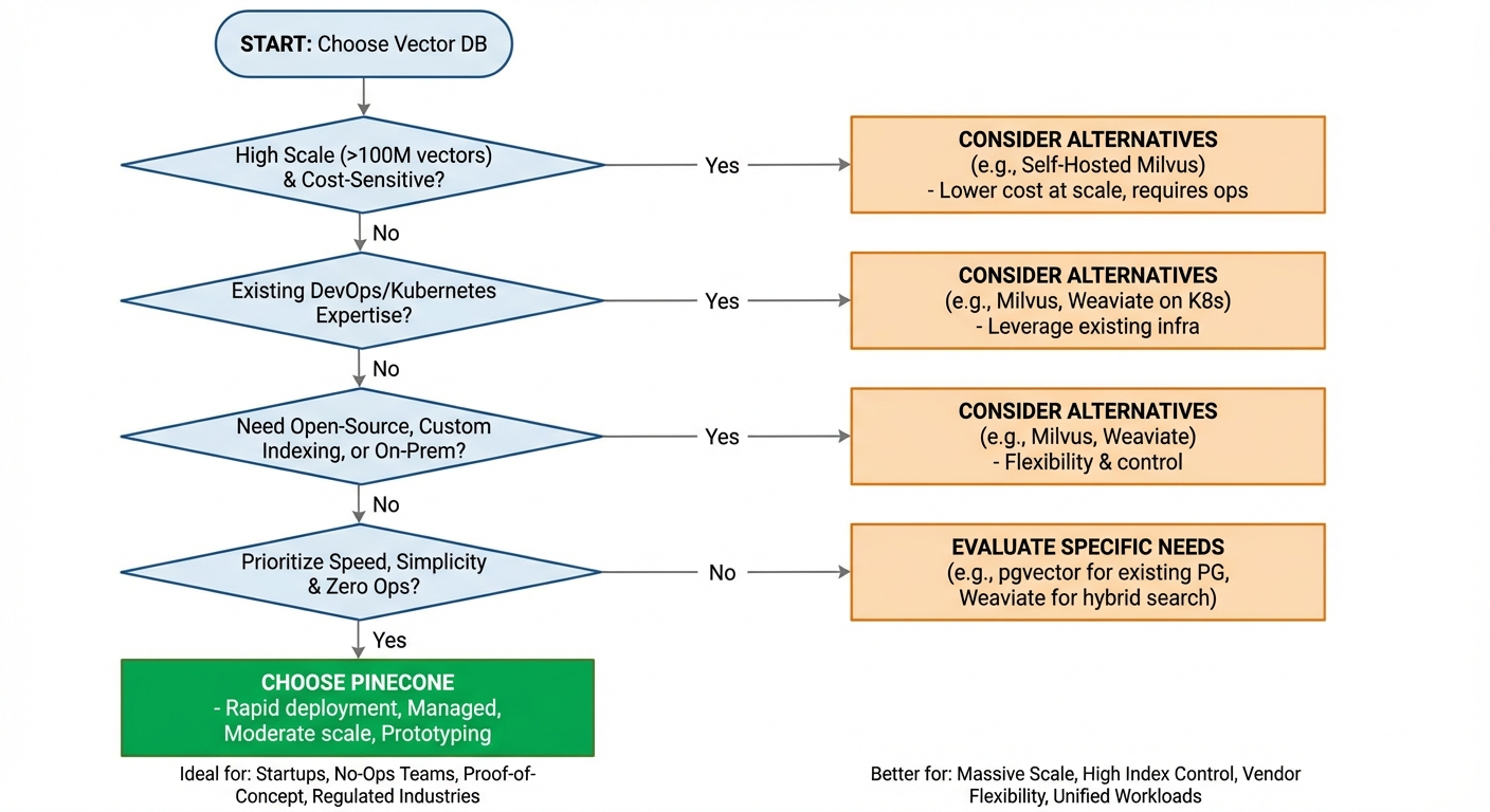 Given the features and limitations above, the decision comes down to matching Pinecone's strengths with your team's situation. Here's a practical breakdown.